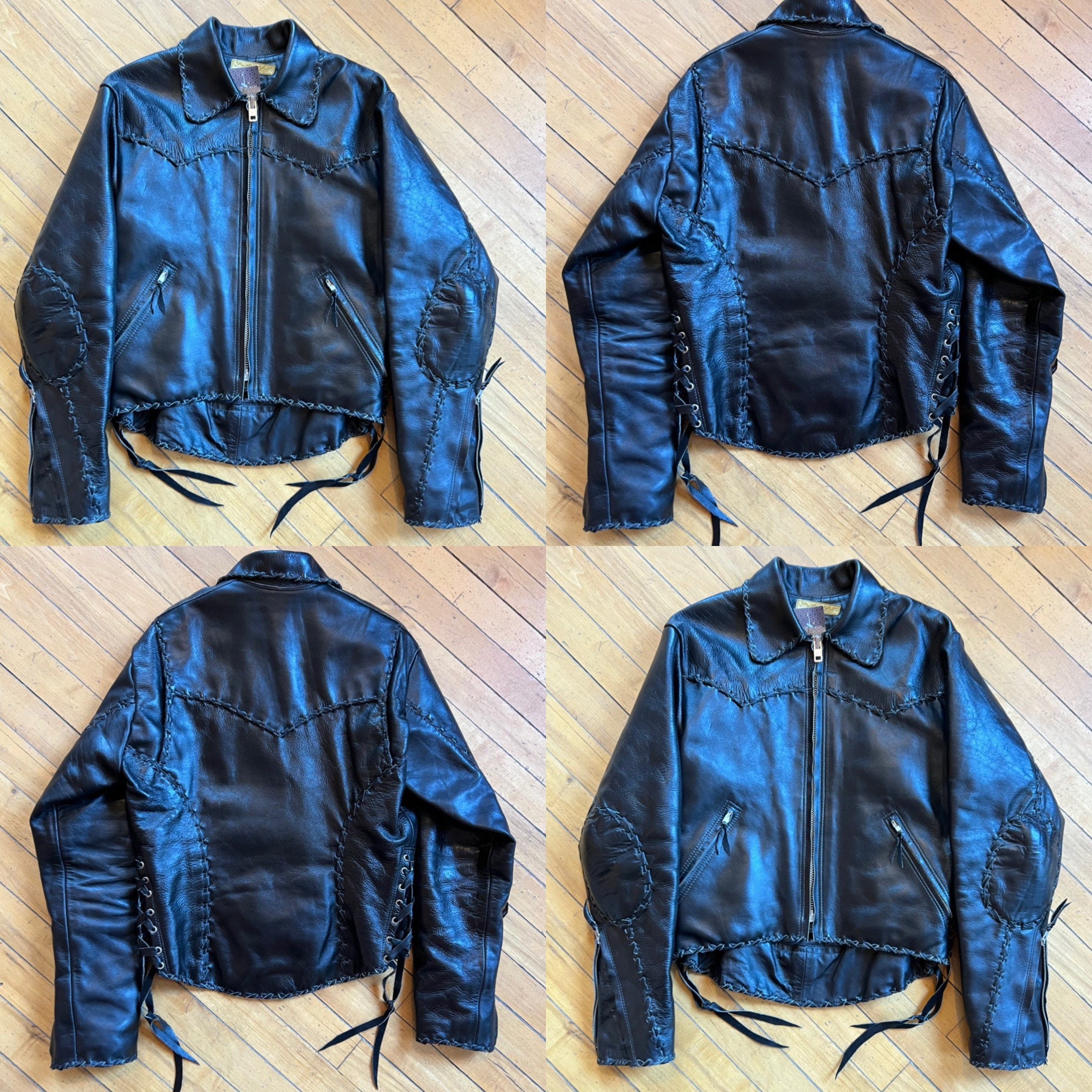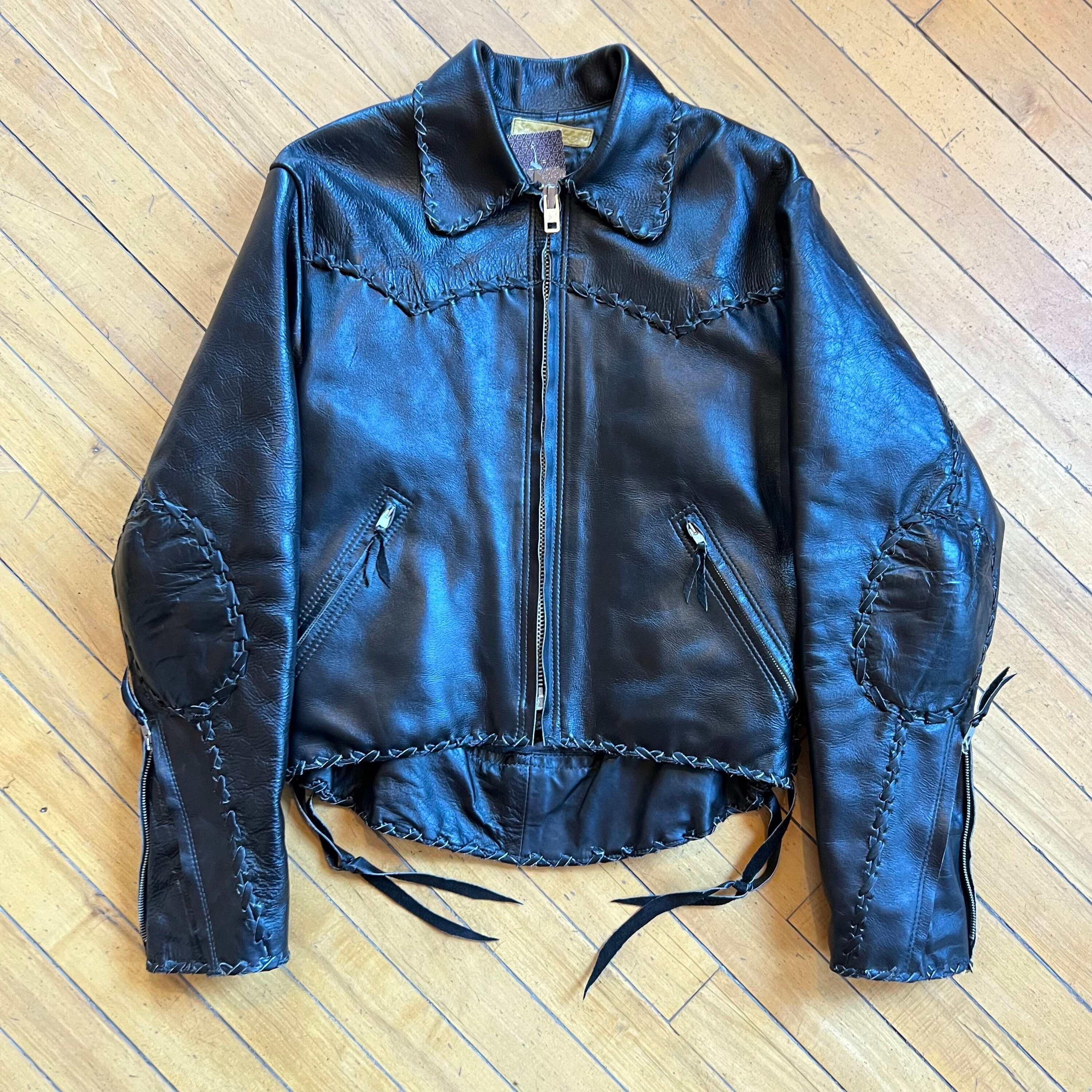 Wow - This jacket really has it all! A true motorcycle riding jacket with North Beach style whipstitched edges, elbow patches and lace up sides, with a slim fit and slightly longer in the back. Heavy duty ACME zipper